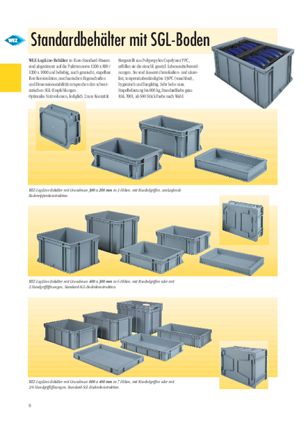 Kunststoff-Gebinde und logistische Problemlösungen für Produktion, Lagerung, Distribution und Verkaufspunkt oder Schutz elektronischer Komponenten und Baugruppen gegen elektrostatische und mechanische Beschädigung.