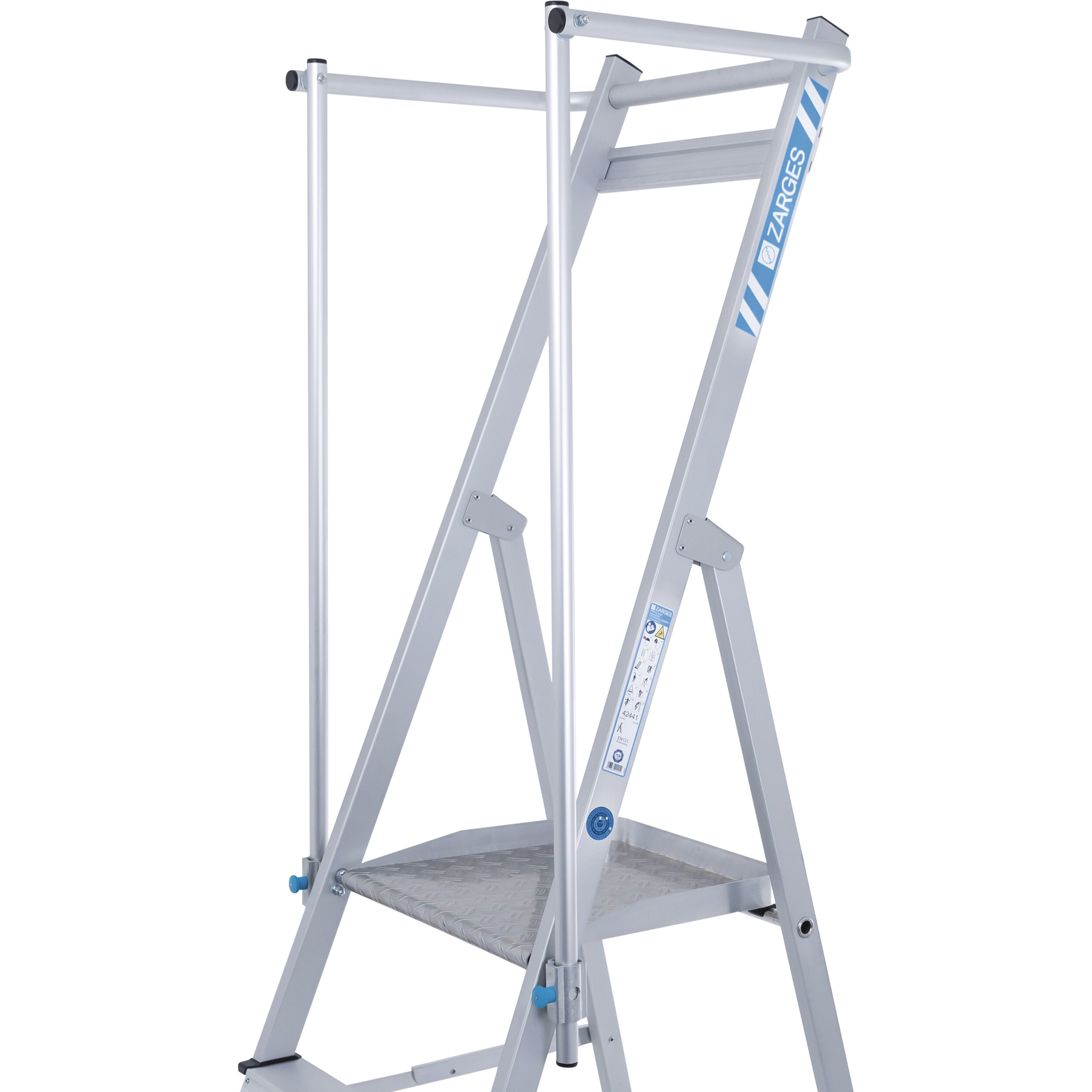 - Aluminium- Arbeitsplattform, ca. 400 x 400 mm, mit dreiseitigem Sicherheitsgeländer (Höhe 1.000 mm).