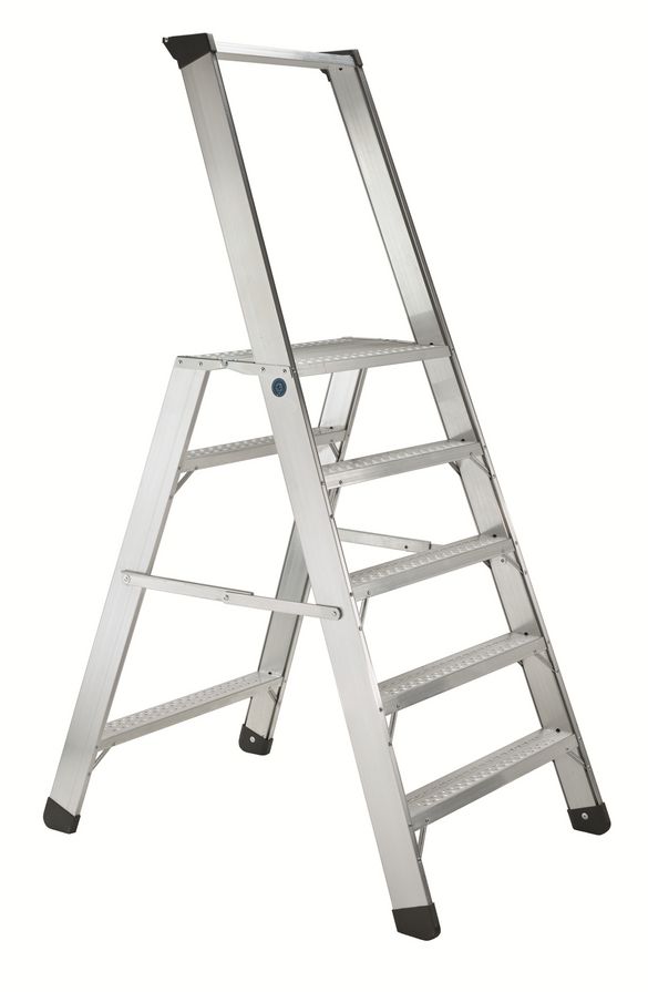 Die neuen Leitern gibt es als Stehleiter, einseitig begehbares Arbeitspodest sowie als beidseitig begehbares Arbeitspodest, jeweils in drei verschiedenen Größen. Neben der Wetterfestigkeit mit dem integrierten Wasserablauf sind die Leitern durch eine besonders hohe Stabilität gekennzeichnet. Dafür sorgen die hochfeste 7-Punkt-Stufen-Holm-Verbindung mit einem Auflagesteg in der Stufenmitte sowie eine klappbare Metallverbindung auf beiden Seiten. Die glatten, grifffreundlichen Holme sorgen für hohen Komfort bei der Handhabung, eine große Plattform für sicheren Stand beim Arbeiten.