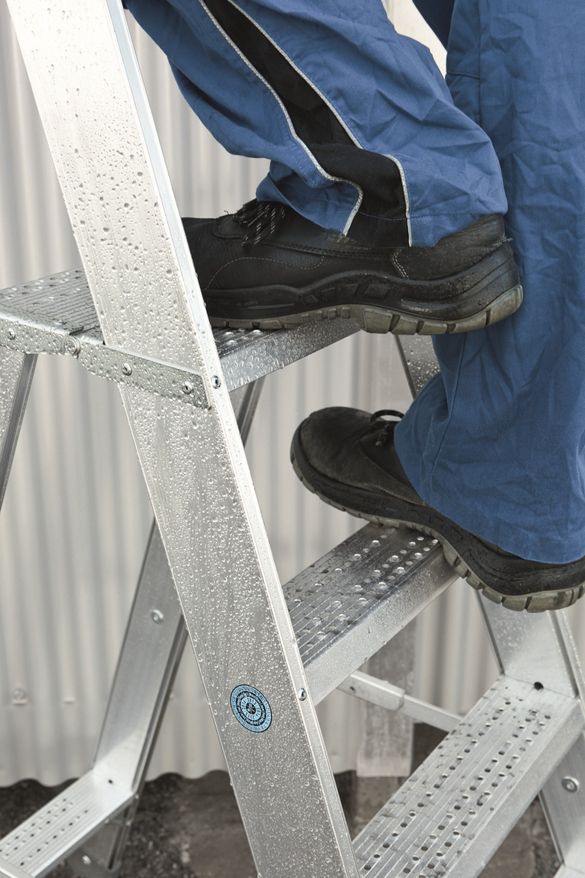 Besonders für den Außenbereich und den Einsatz bei Schmutz, Nässe und Schnee hat ZARGES jetzt die Modelle Z 500 Seventec RC im Sortiment. Die Besonderheit: Die profilierten und mit 85 Millimetern extra breiten Stufen bieten hohe Trittsicherheit und sicheren Stand, durch die integrierte Lochung kann das Wasser abfließen.