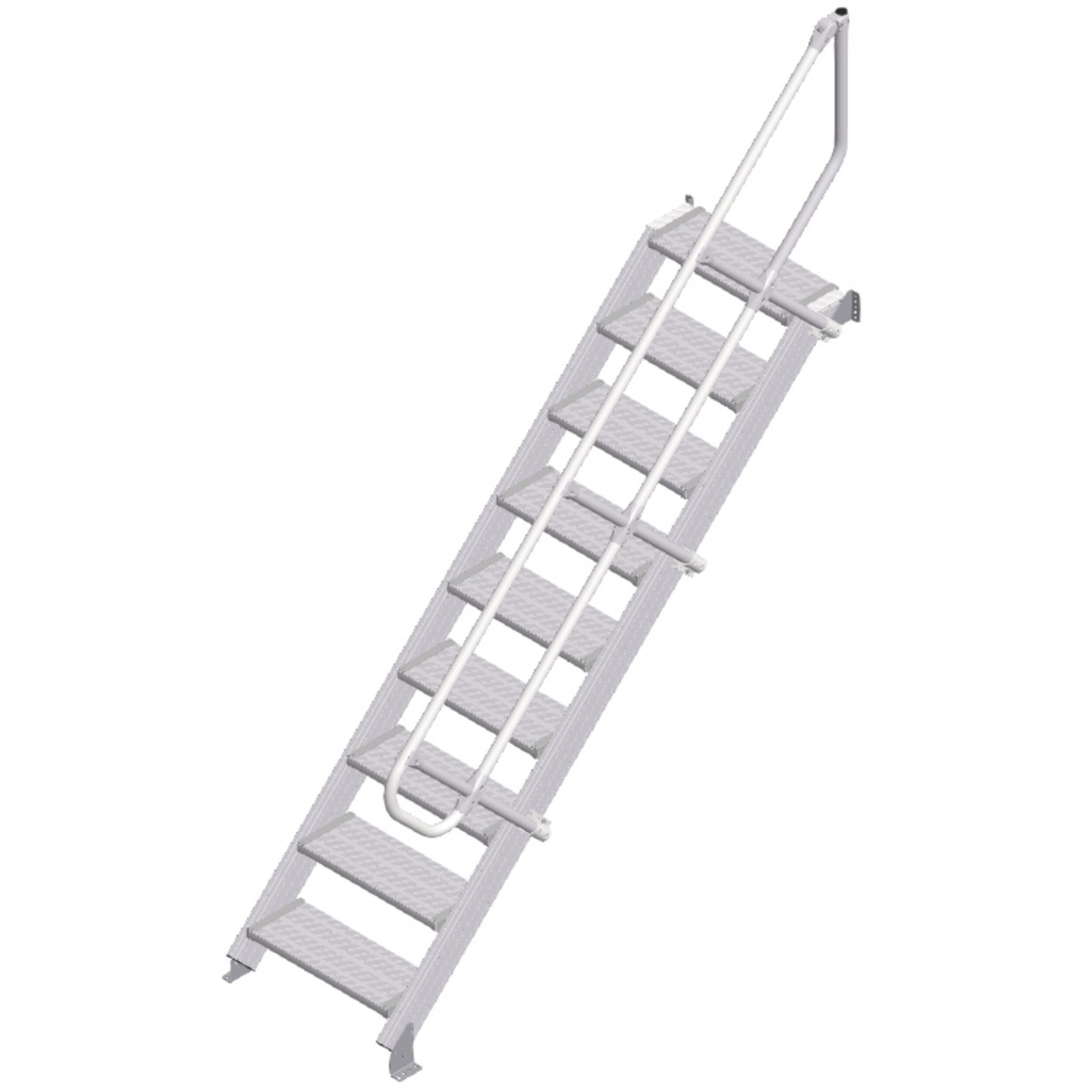 • Rivestimento gradini e piattaforma di serie in alluminio con scanalature (R10). A scelta anche come griglia in acciaio (R12) e lamiera perforata in acciaio (R13) per una migliore resistenza allo scivolamento.