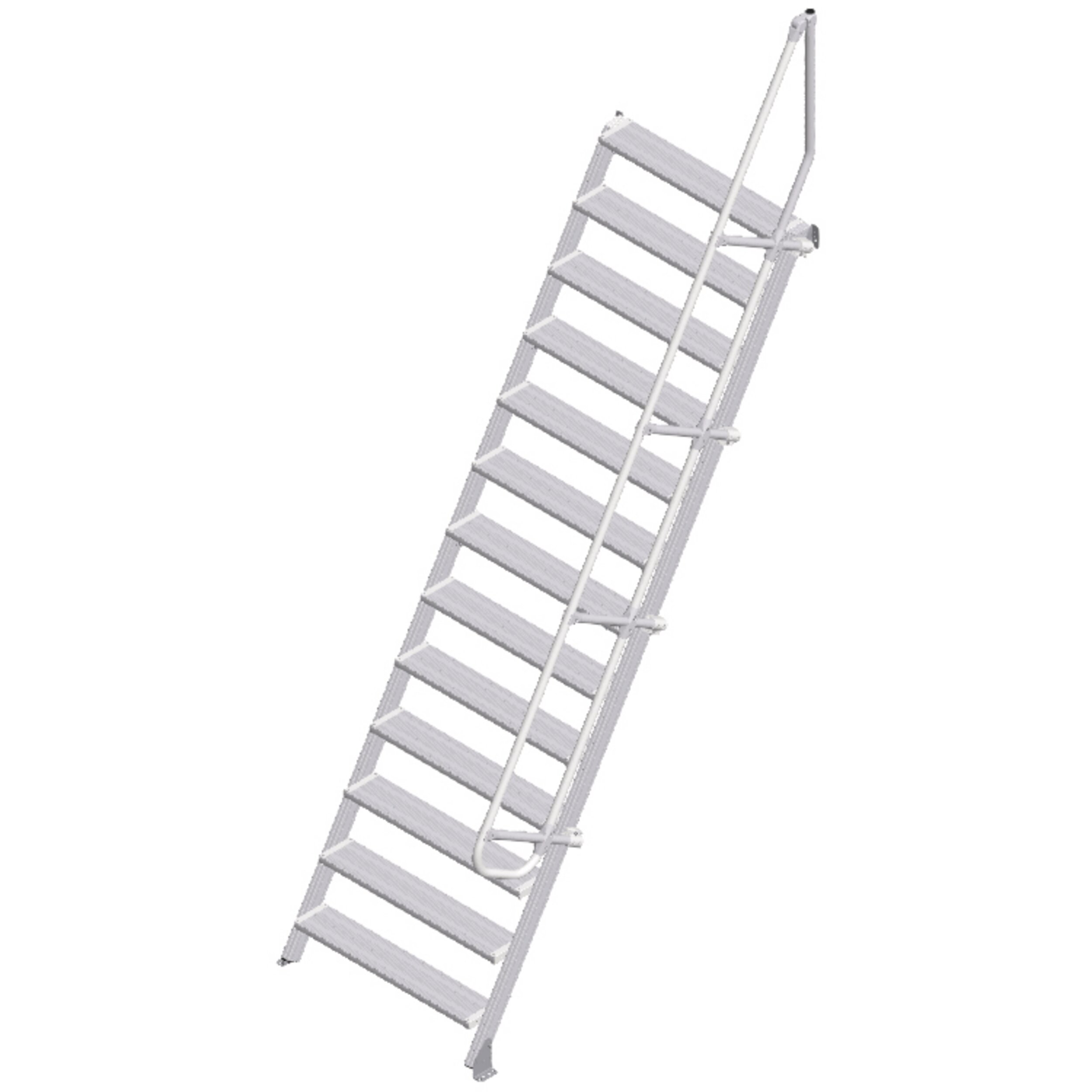 • Rivestimento gradini e piattaforma di serie in alluminio con scanalature (R10). A scelta anche come griglia in acciaio (R12) e lamiera perforata in acciaio (R13) per una migliore resistenza allo scivolamento.