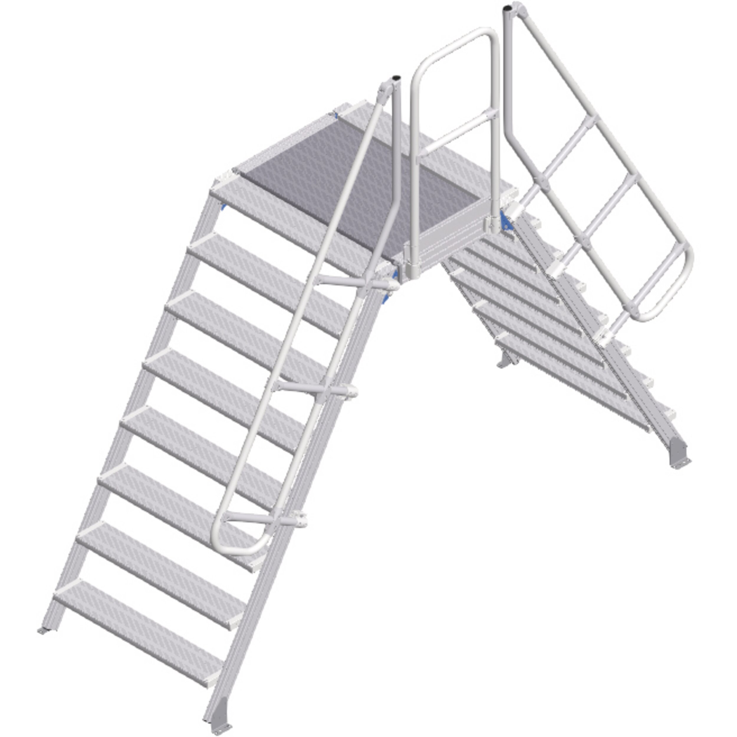• Povrch stupňů a plošiny v sériovém provedení z rýhovaného hliníku (R10). Volitelně i jako ocelový mřížový rošt (R12) a ocelový děrovaný plech (R13) pro lepší protiskluznost.