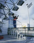 Die acht unteren Strahler sind für die Techniker auf diese Weise problemlos erreichbar. Doch für das höher angebrachte Paar war eine Speziallösung erforderlich. Sicherheit geht vor an diesem sensiblen Arbeitsplatz - mit einer einfachen Stehleiter war es da nicht getan.