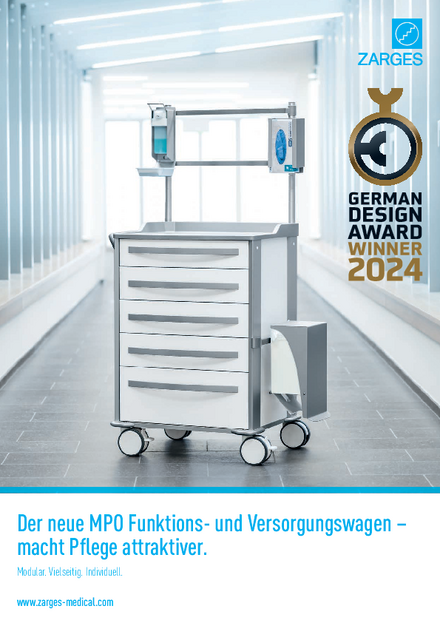 Beim modularen Pflege- und Organisationswagen von ZARGES lässt sich Zubehör einfach und ohne Werkzeug an den jeweiligen Verwendungszweck anpassen. Die neue Version des bewährten modularen Pflege- und Organisationswagen (MPO) kann für verschiedene Zwecke beispielsweise in Pflege, Medikation, Anästhesie, bei Notfällen und Visiten eingesetzt werden und lässt sich ganz ohne Werkzeug, mit wenigen Handgriffen modifizieren.