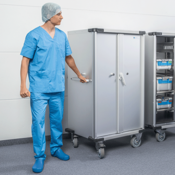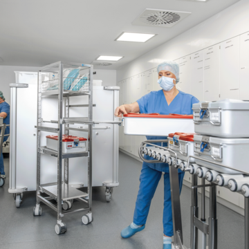 Krankenhäuser stehen vor der Herausforderung, wirtschaftlich zu arbeiten und reibungslose Abläufe sicherzustellen. Seit 1998 unterstützen wir Sie dabei, Ihre Logistik effizient, ökonomisch, ergonomisch und sicher zu gestalten. Unsere Lösungen entstehen in enger Zusammenarbeit mit den Kunden und einem ganzheitlichen Blick auf alle Prozesse. Besonders im OP- und AEMP-Bereich sind die Anforderungen an die Logistik hoch. Deshalb haben wir ein spezielles Sortiment aus weiterentwickelten Produkten und Neuentwicklungen für den Transport und die Lagerung von Sterilgut, sowie die OP-Logistik zusammengestellt, damit wir Ihnen für jede Aufgabe und Situation in der Sterilgutversorgung professionelle und maßgeschneiderte Lösungen anbieten können.