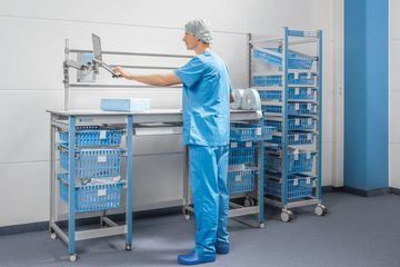 Jedes Krankenhaus hat unterschiedliche Anforderungen und Bedingungen beim Verpacken des Sterilguts. Die Arbeitsplätze müssen ergonomisch sein und eine gute Arbeitsplatzorganisation erlauben. Mobile Transport- und Lagerungslösungen helfen dabei, den vorhandenen Platz flexibel nutzen zu können.