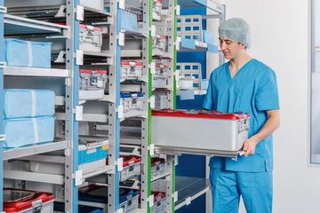 Unsere Lagerungs- und Transportlösungen sind flexibel konzipiert und helfen Ihnen dabei, den Materialfluss zu optimieren, Sterilgut reibungslos durchzuschleusen und somit Stoßzeiten effizient zu bewältigen.
