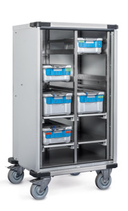Mit unseren mobilen Transportlösungen können Sie vorhandene Räume auch in Stoßzeiten besser nutzen und die Sterilgut-Versorgung mit unseren festen und mobilen Lagerungssystemen und Labelinglösungen schneller und zuverlässiger gestalten.