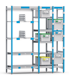 Unsere anpassbaren Regale und Schränke sowie ein cleveres Kennzeichnungssystem ermöglichen schnelles Einräumen und Kommissionieren des Materials nach der Sterilisierung.