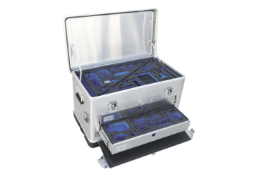 Mobil und ergonomisch. Perfekt anpassbar an Ihre Anforderungen. Schubladen für direkten Zugang zum Inhalt auch im Stapel. Rollen und Teleskopgriff für einfachen und ergonomischen Transport. Optimale Mobilität durch serienmäßige 50 mm Rollen, optional 125 mm Rollen oder Offroadset 220 mm mit Standfüßen. Individuell konfigurierbar in Größe, Anzahl der Schubladen und Ausstattung.