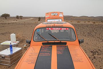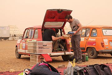 Dieses Jahr ist auch ZARGES unter den Sponsoren vertreten damit Fahrer und Teilnehmer das Equipment für die Rallye sicher und effizient verstauen können. Wir gut unsere Kisten in die kleinen Vehikel passen sieht man beim Darmstädter Team. Clemens Bugiel, Paul Felber, Martin Legleitner & Patrick Otto waren von Februar bis März in ihren beiden Renault 4 unterwegs - die ganze spannende Geschichte kann man auf dieser Seite lesen: http://r4d4.org/
