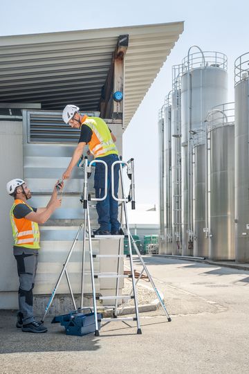 ZARGES Tritte und Arbeitspodeste bieten einen sicheren Aufstieg für kurze Tätigkeiten und erfüllen die Anforderungen für Arbeitsschutzprämien.