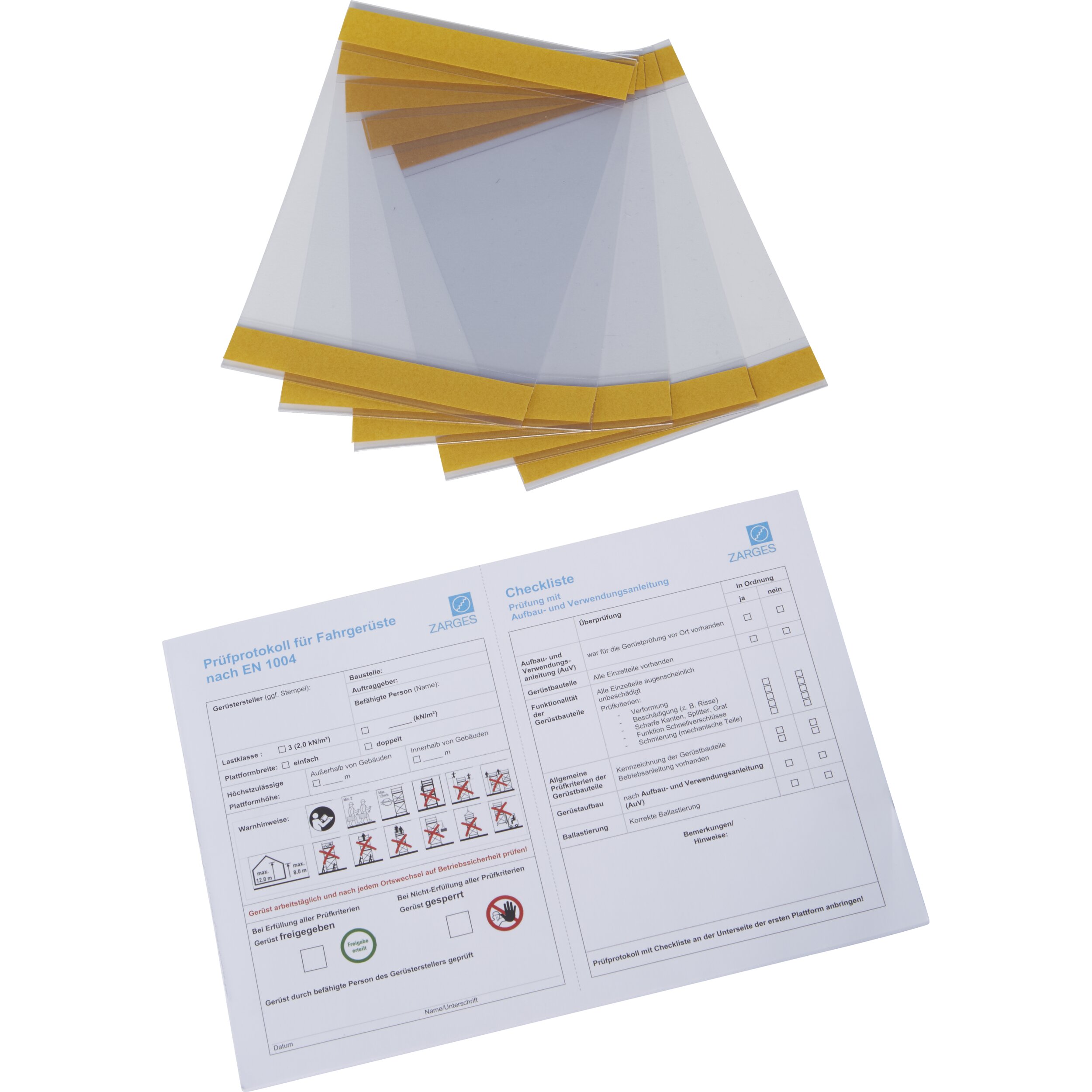 - Bestehend aus einem DIN-A4-Block a 80 Blatt sowie fünf DIN A5 selbstklebenden PVC-Hüllen.