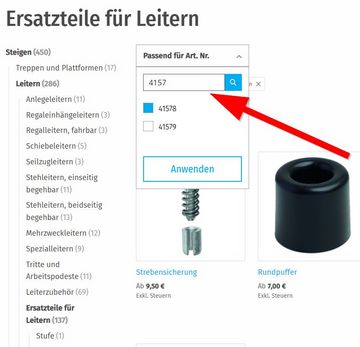 Das passende Ersatzteil für Ihre Leiter finden Sie schnell und einfach über unseren Ersatzteilshop.