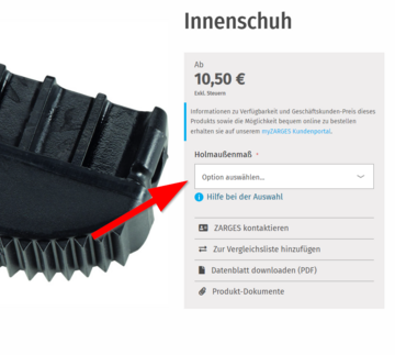 - Wählen Sie das gewünschte Ersatzteil aus und wählen Sie die passende Größe. Dabei hilft Ihnen unser Auswahlhelfer über den Button "Hilfe bei der Auswahl".