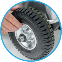 Große, geländegängige Rollen für maximale Mobilität auf unterschiedlichsten Untergründen.