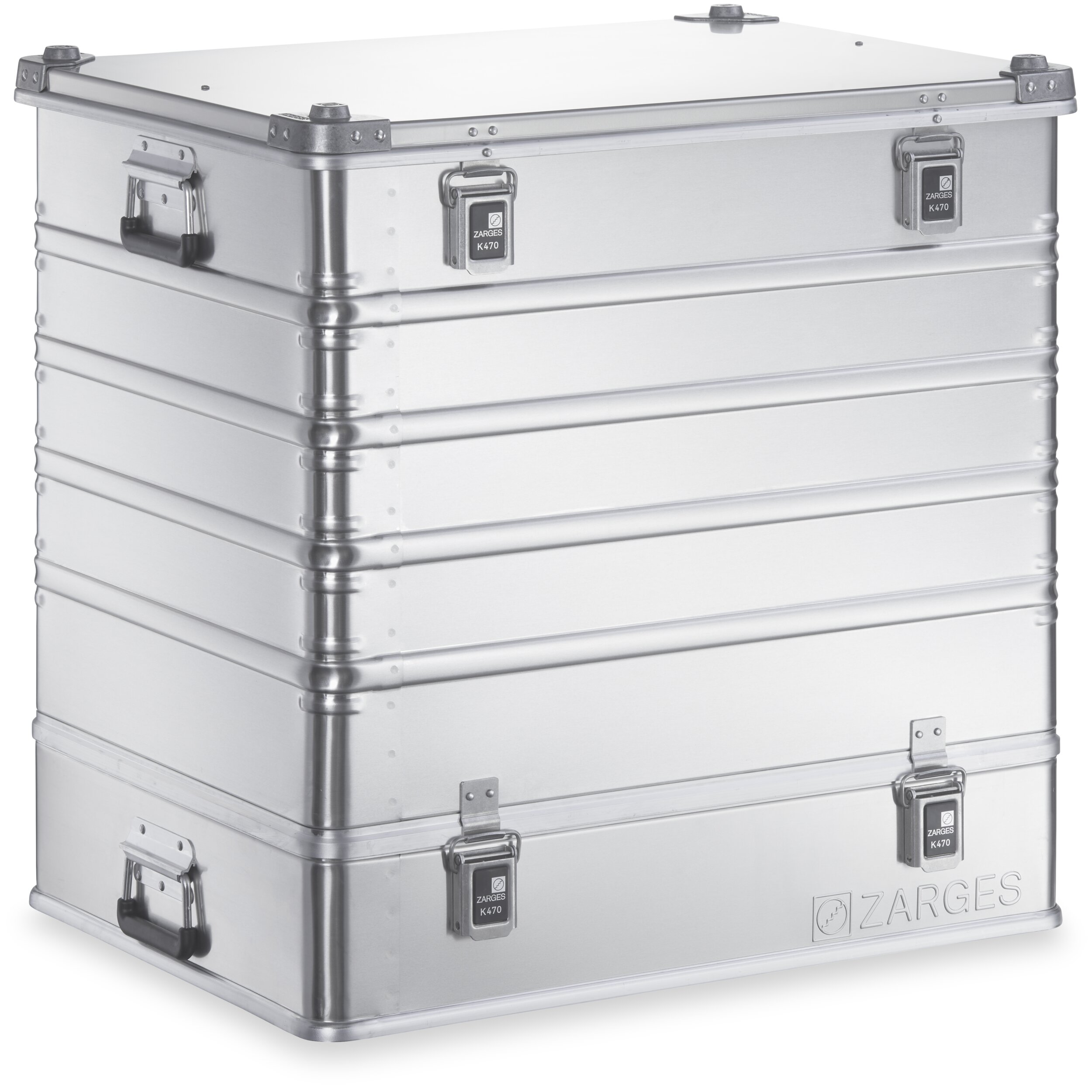 With the K 470 Plus, ZARGES is following an innovative packaging concept: a two-part transportation system, comprising an upper and a lower section. This allows you to combine elements of different heights, creating a whole new range of possibilities.