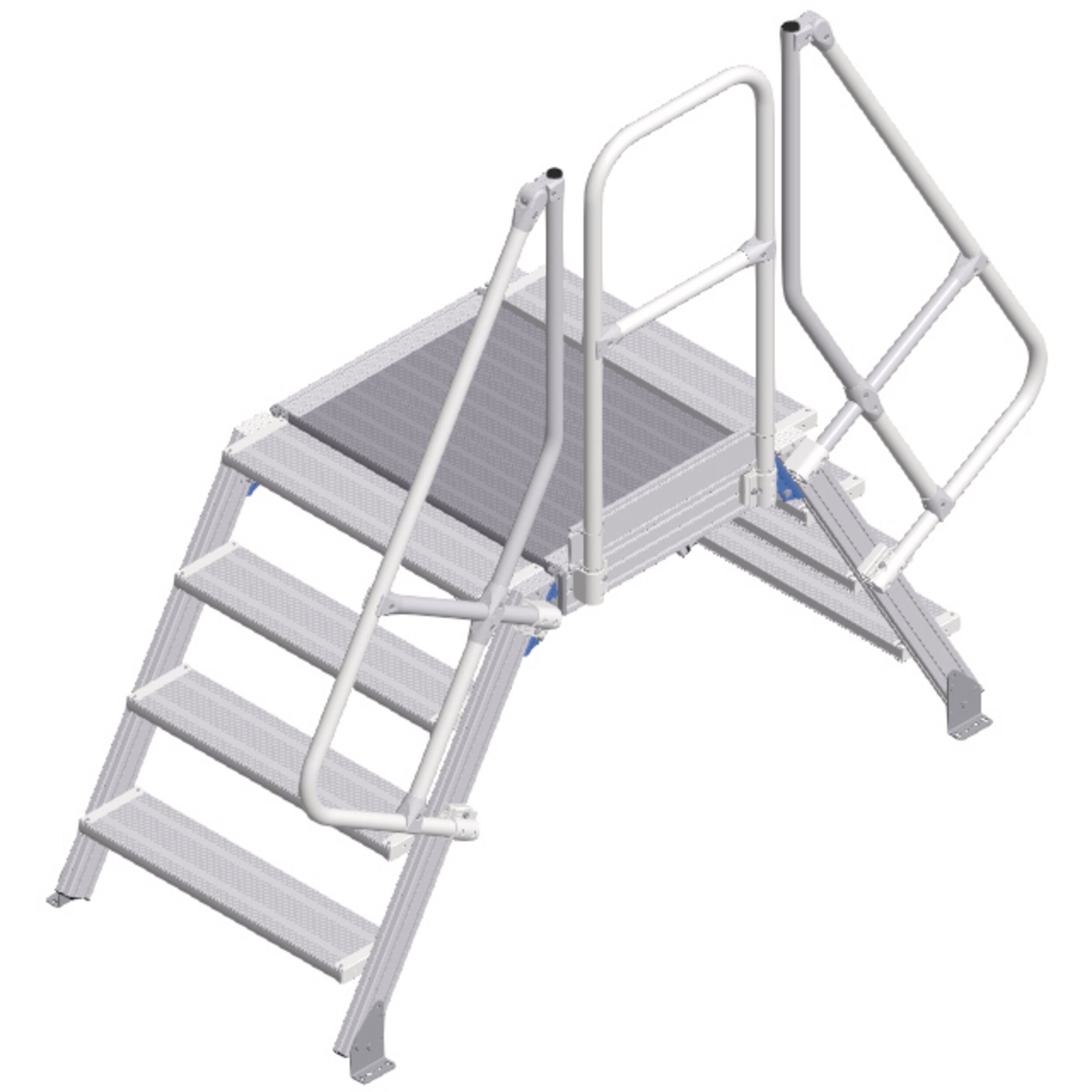 Stationary or mobile platform for bridging obstacles or as a work platform with access from both sides. Large-area platform with guardrail for safe and ergonomic working at heights.