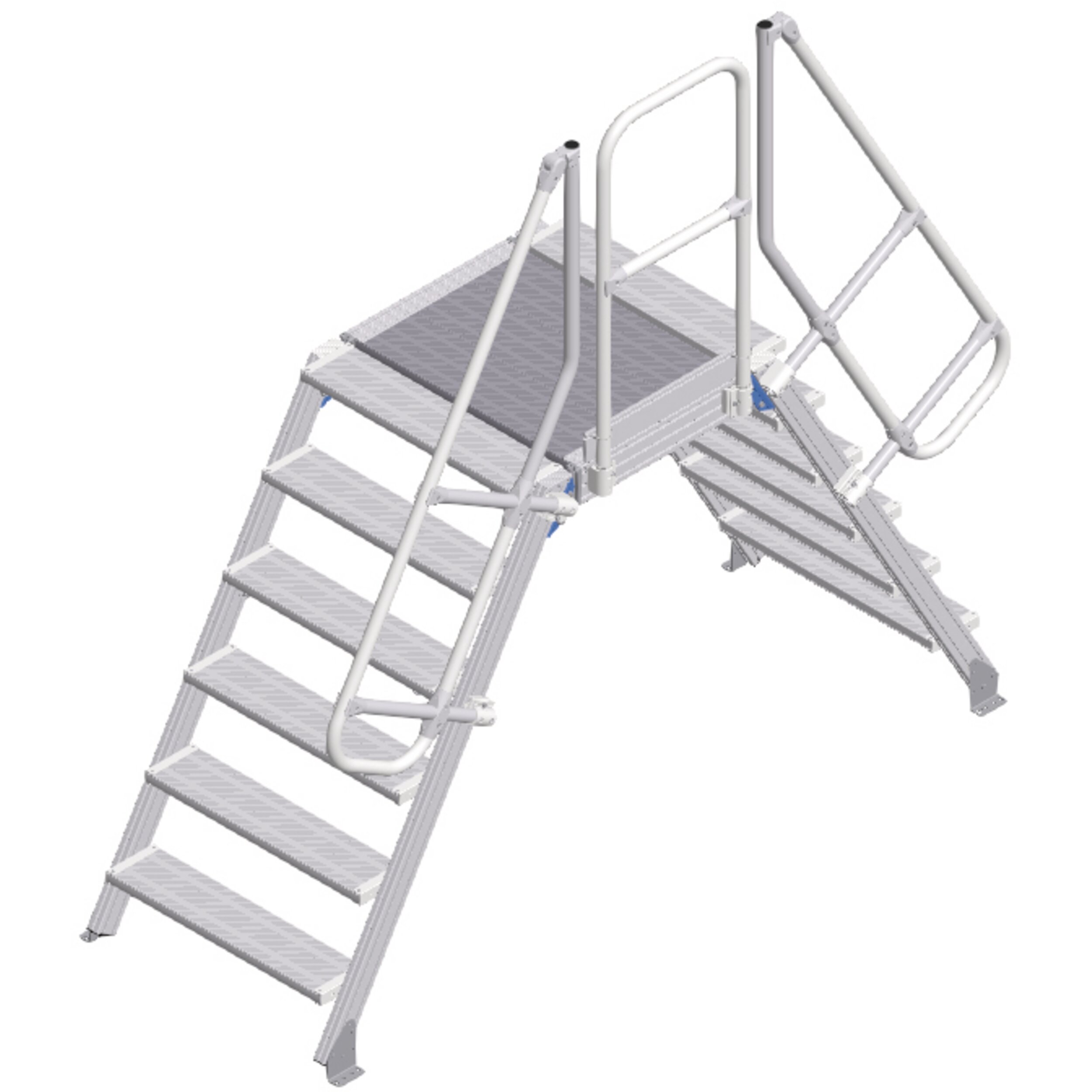 Stationary or mobile platform for bridging obstacles or as a work platform with access from both sides. Large-area platform with guardrail for safe and ergonomic working at heights.