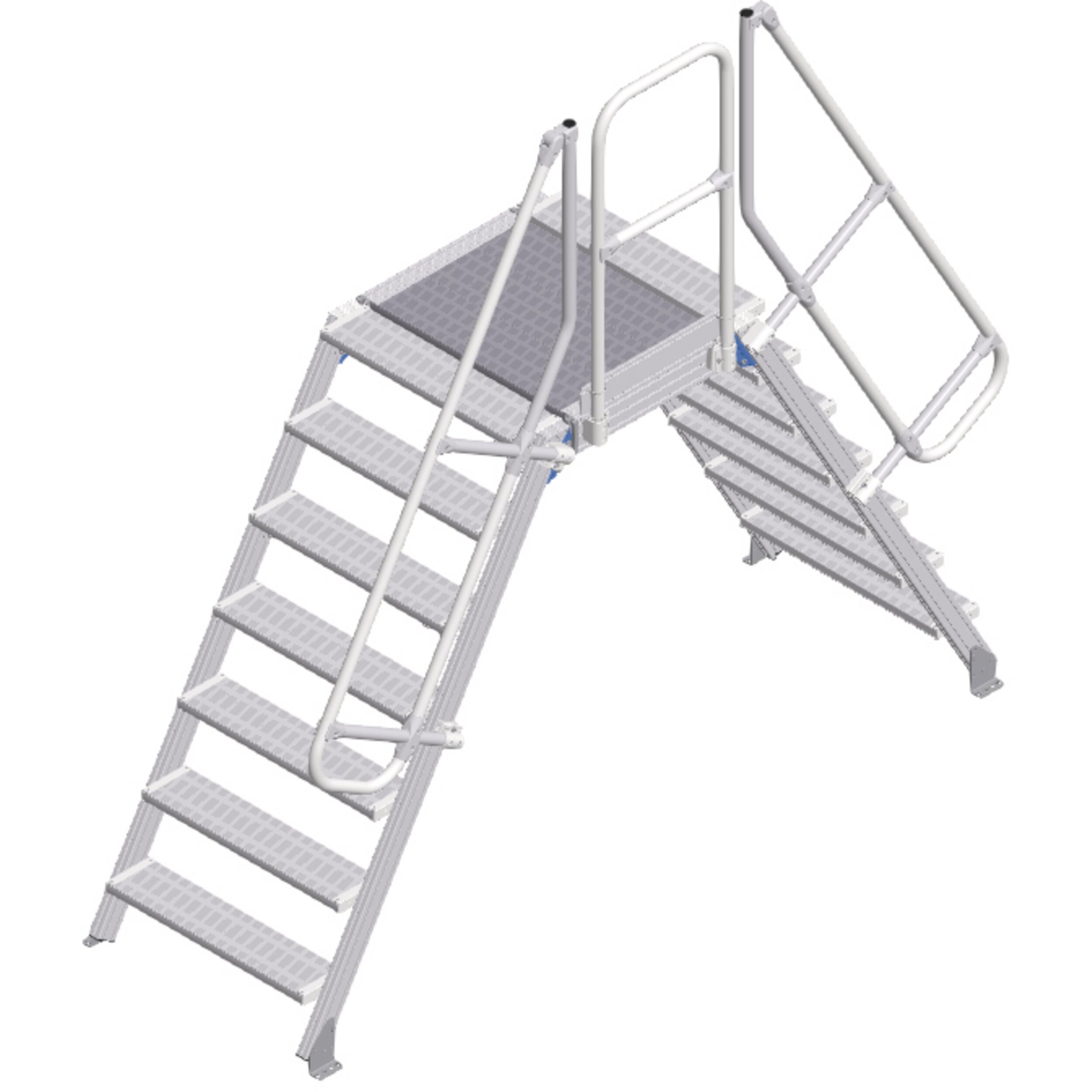 Stationary or mobile platform for bridging obstacles or as a work platform with access from both sides. Large-area platform with guardrail for safe and ergonomic working at heights.