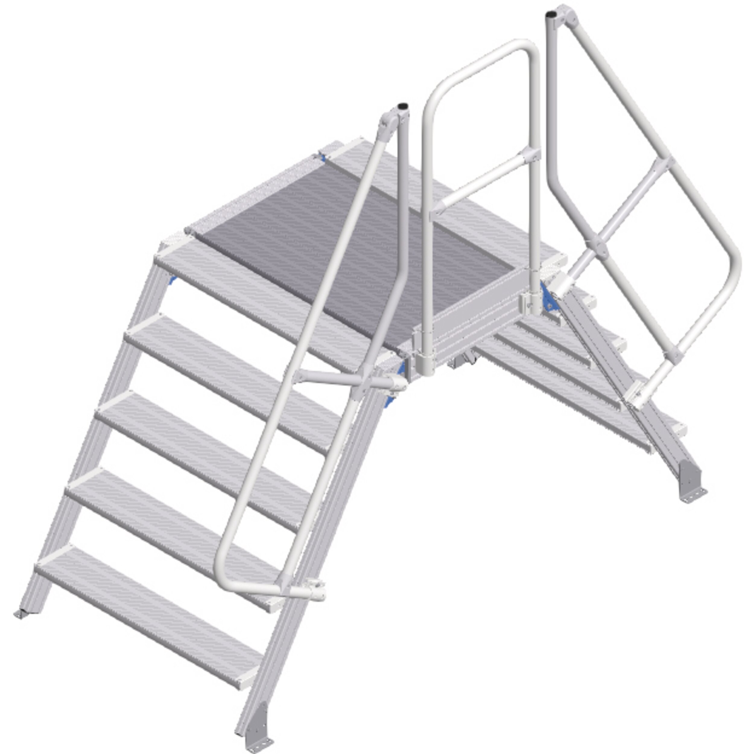 Stationary or mobile platform for bridging obstacles or as a work platform with access from both sides. Large-area platform with guardrail for safe and ergonomic working at heights.