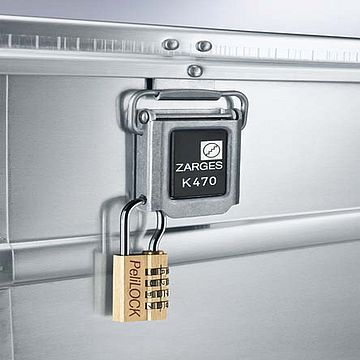 - Cierre confort ZARGES para un manejo ergonómico y una vida útil extremadamente larga con clip azul Eurobox