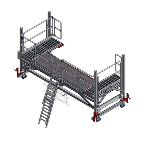 - Plataformas con técnica de brazo voladizo para un acceso lo más libre posible a todas las posiciones relevantes del montaje.