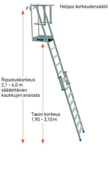- Koukkujen korkeus on säädettävissä, 2,1 - 4,0 m.