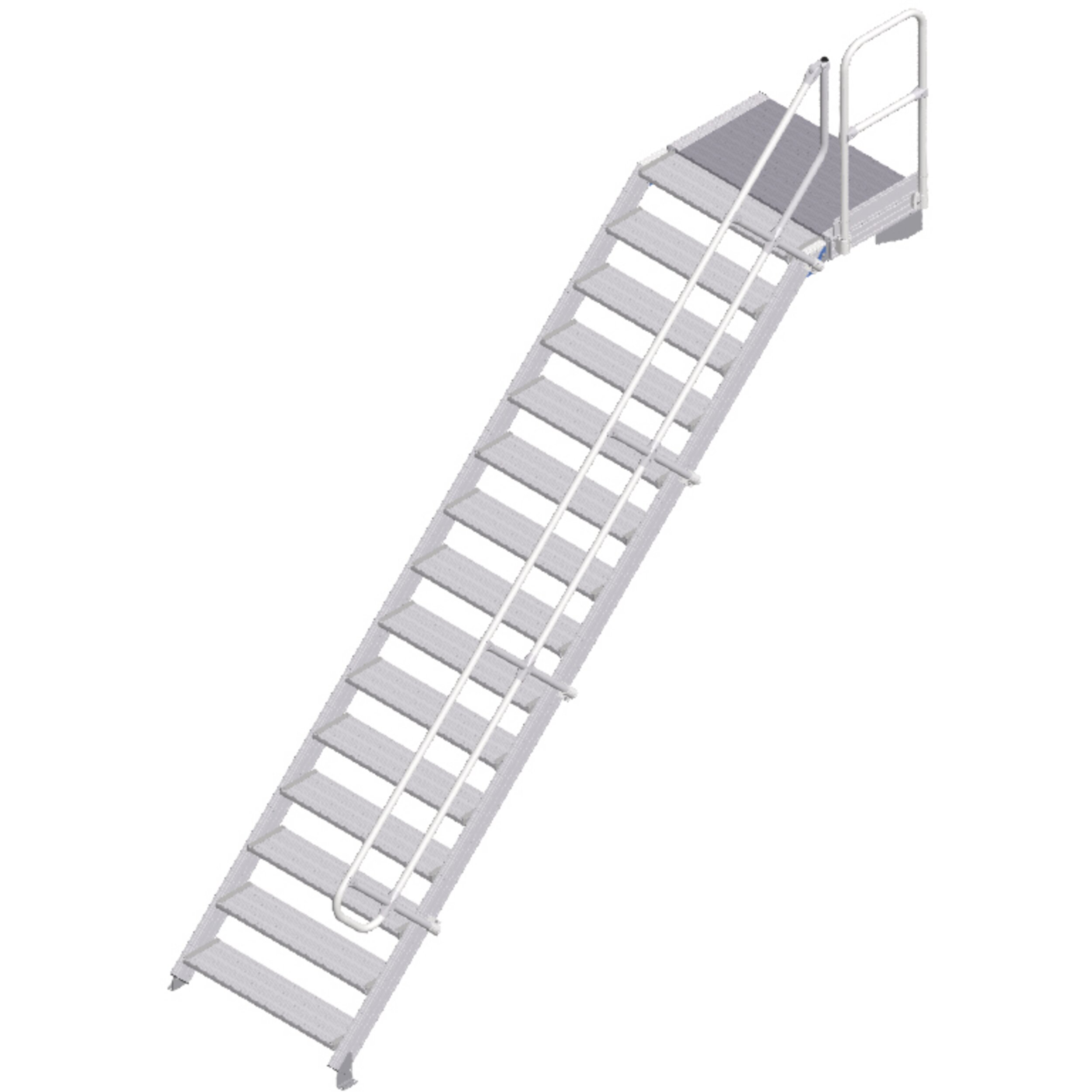 • Askelmat ja taso rihlattua alumiinia (R10). Valittavissa myös liukumista estävä teräsritilä (R12) tai rei'itetty teräslevy (R13).