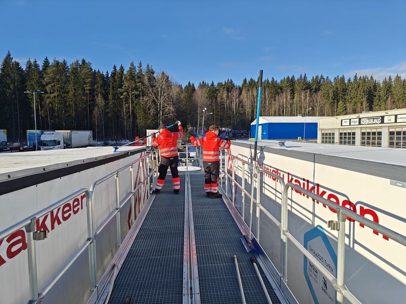 Lumien ja jään poistaminen kuorma-autojen katoilta voi olla vaarallista ja sisältää merkittävän putoamisriskin. Ilman asianmukaisia turvavarusteita, kuten valjaita tai työtasoja, työskentely korkealla voi johtaa vakaviin onnettomuuksiin. Turun ammatti-instituutti halusi löytää tehokkaan ratkaisun, joka mahdollistaisi turvallisen työskentelyn ilman ylimääräisiä henkilökohtaisia turvavarusteita.