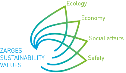Zargesille ja sen emoyhtiölle WernerCo:lle kestävyys käsittää tietenkin ympäristön suojelua, mutta myös paljon muuta. Se tarkoittaa myös ympäristöystävällistä, taloudellisesti ja sosiaalisesti tervettä toimintaa ja resurssien vastuullista käyttöä tulevia sukupolvia ajatellen. Kestävien toimintaohjeiden tarkoituksena on tarjota sisäisille ja ulkoisille sidosryhmille kaikki asiaankuuluvat tiedot ja viestiä avoimella tavalla mahdollisuuksista ja haasteista sekä parannus tavoitteista. Kestävän kehityksen kolmen pilarin lisäksi, ohjeisiin sisältyy neljäs pilari, joka on Zargesin näkökannalta merkityksellinen, nimittäin turvallisuus. Turvallisuus on Zargesin ydinosaamista, ja turvallisuuteen liittyvien varusteiden valmistajana he haluavat myös tältä osin olla vaikuttamassa yhteiskuntaan.