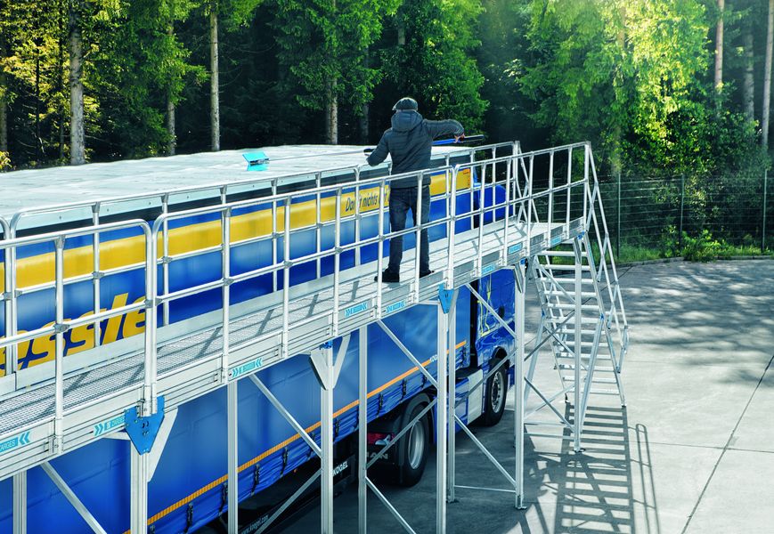 ZARGES on kehittänyt kunnossapitotyötason kuorma- ja linja-autoille. Työtason pituus on mukautettavissa ja pääsy tapahtuu portaita pitkin. Näin työtaso on käytettävissä kaikkiin kunnossapito- ja huoltotöihin kuorma- ja linja-autoille. Työtasot ovat turvallisuusluokiteltu EU:n koneturvallisuusvaatimusten mukaisesti.