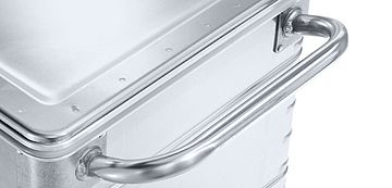 - A körbefutó bordák és sarokbordák növelik a homlokoldali és oldali megerősítést (a 70 literes tartályoknál csak sarokbordák).