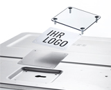 Az újonnan gondolt logótartó a fedeleken egyedi feliratozást tesznek lehetővé. Lássa el a ZARGES DATA® biztonsági tartályt a céges logójával, az osztály megjelölésével vagy egyéb információkkal. Nyomtassa ki a kívánt címkét, vágja le méretre és helyezze be. A legjobb, ha már most megrendel egy üres lapot vízálló címkékkel a nyomtatója számára. A ZARGES DATA® biztonsági tartályt természetesen megrendelheti előre felszerelt logóval is. A robusztus műanyaglemez megvédi a címkét a karcolástól. A logótartókat standard felszerelésben ZARGES DATA® logóval szállítjuk.