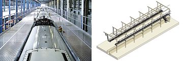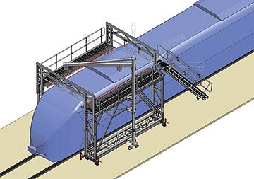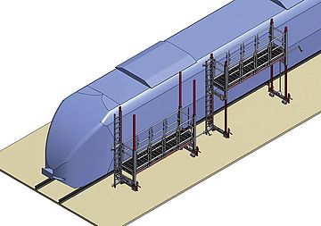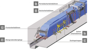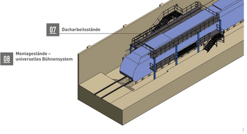 - Emelvények darus kartechnikával a lehetőség szerint az összes fontos szerelőpozíció szabad eléréséhez.