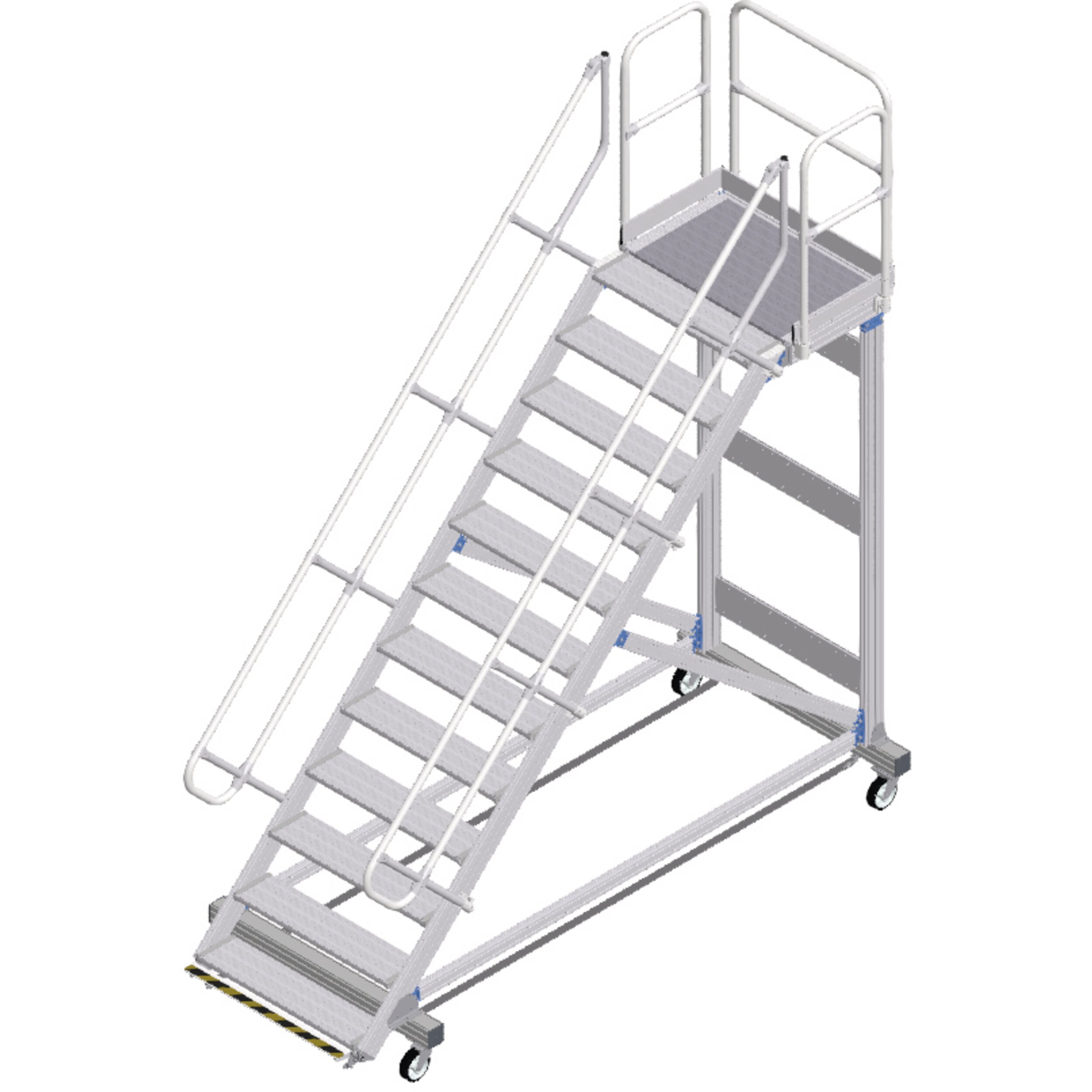 Mozgatható hozzáférési vagy munkadobogó kényelmes feljutással. Ideális az elhúzódó munkákhoz, szerszámmal is, és akár gyakori helyváltoztatással is. Nagyméretű dobogó korláttal a biztonságos és ergonomikus munkavégzéshez a magasban.