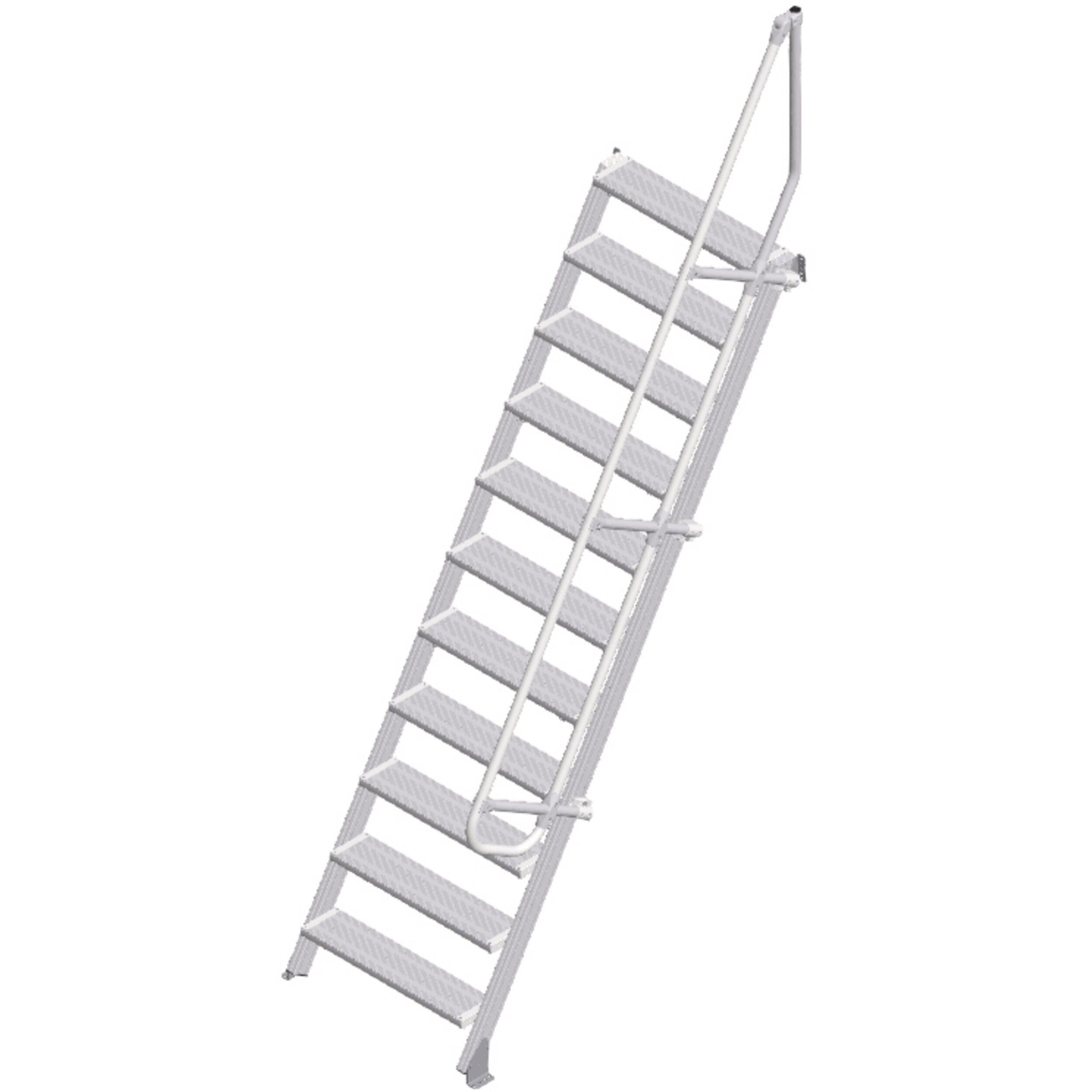 • A lépcsők és a dobogó bevonata alapfelszerelésben bordázott alumíniumból (R10). Választható acélrácsos (R12) és perforált acéllemezes (R13) kivitelben is a nagyobb csúszásbiztonság érdekében.