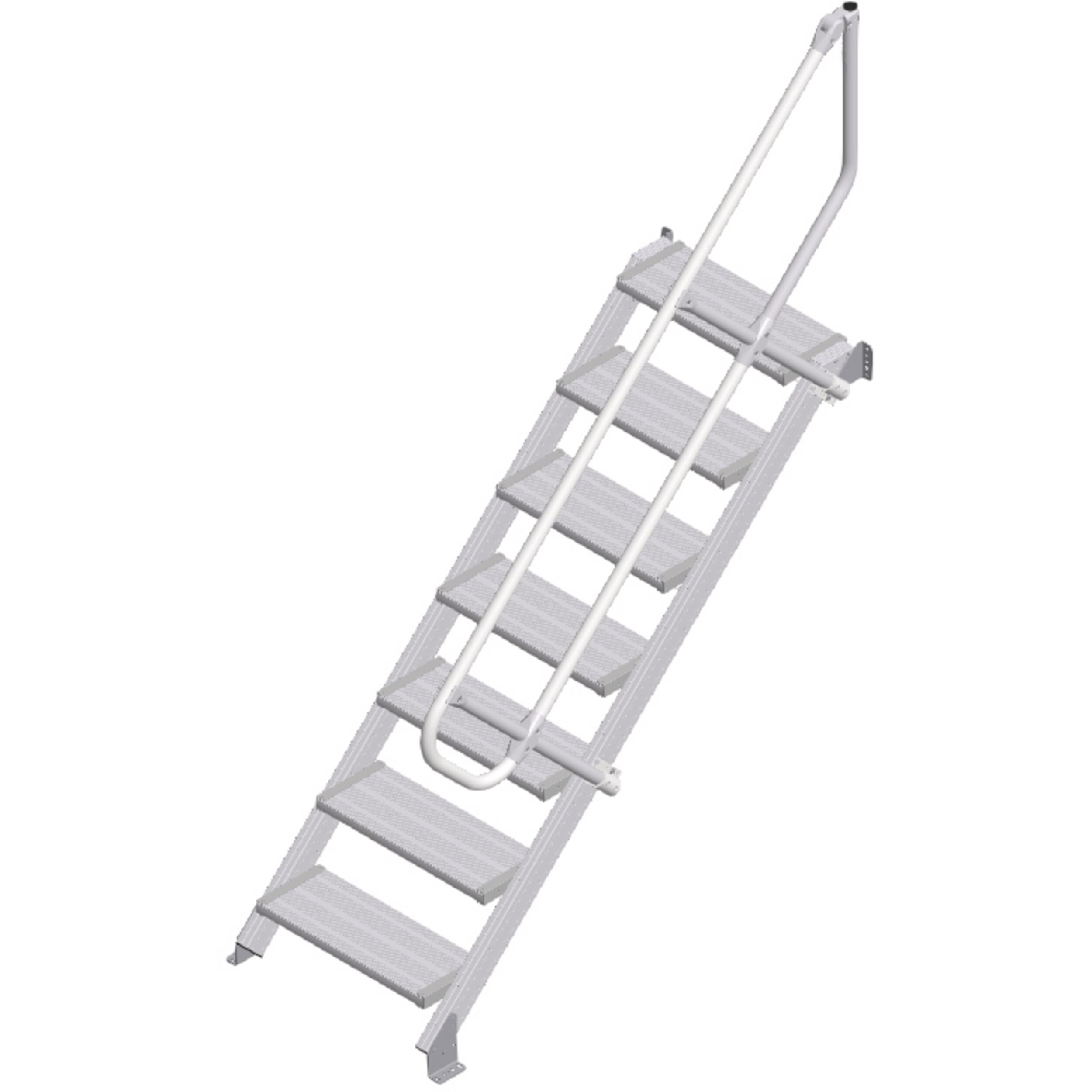 • A lépcsők és a dobogó bevonata alapfelszerelésben bordázott alumíniumból (R10). Választható acélrácsos (R12) és perforált acéllemezes (R13) kivitelben is a nagyobb csúszásbiztonság érdekében.