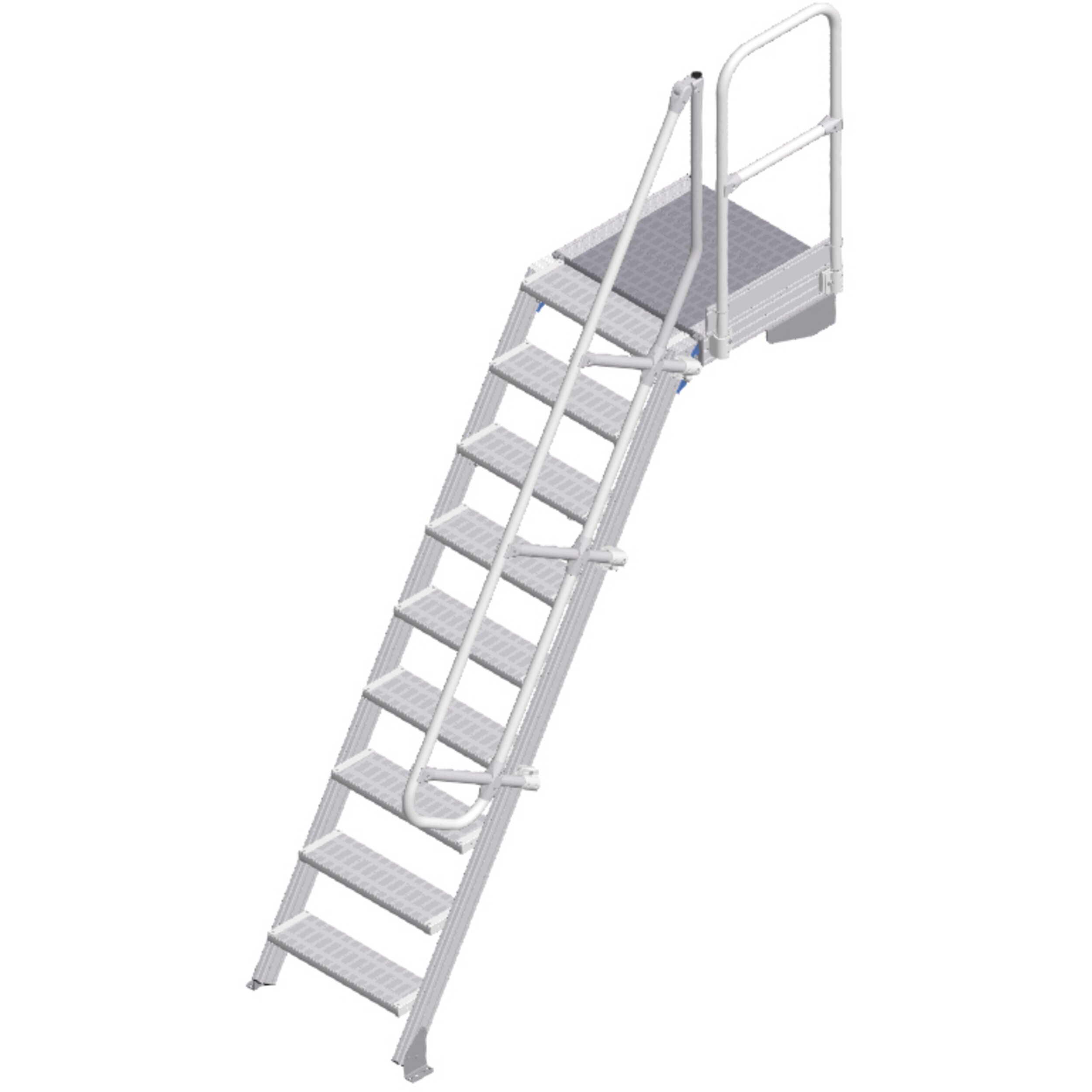 • A lépcsők és a dobogó bevonata alapfelszerelésben bordázott alumíniumból (R10). Választható acélrácsos (R12) és perforált acéllemezes (R13) kivitelben is a nagyobb csúszásbiztonság érdekében.