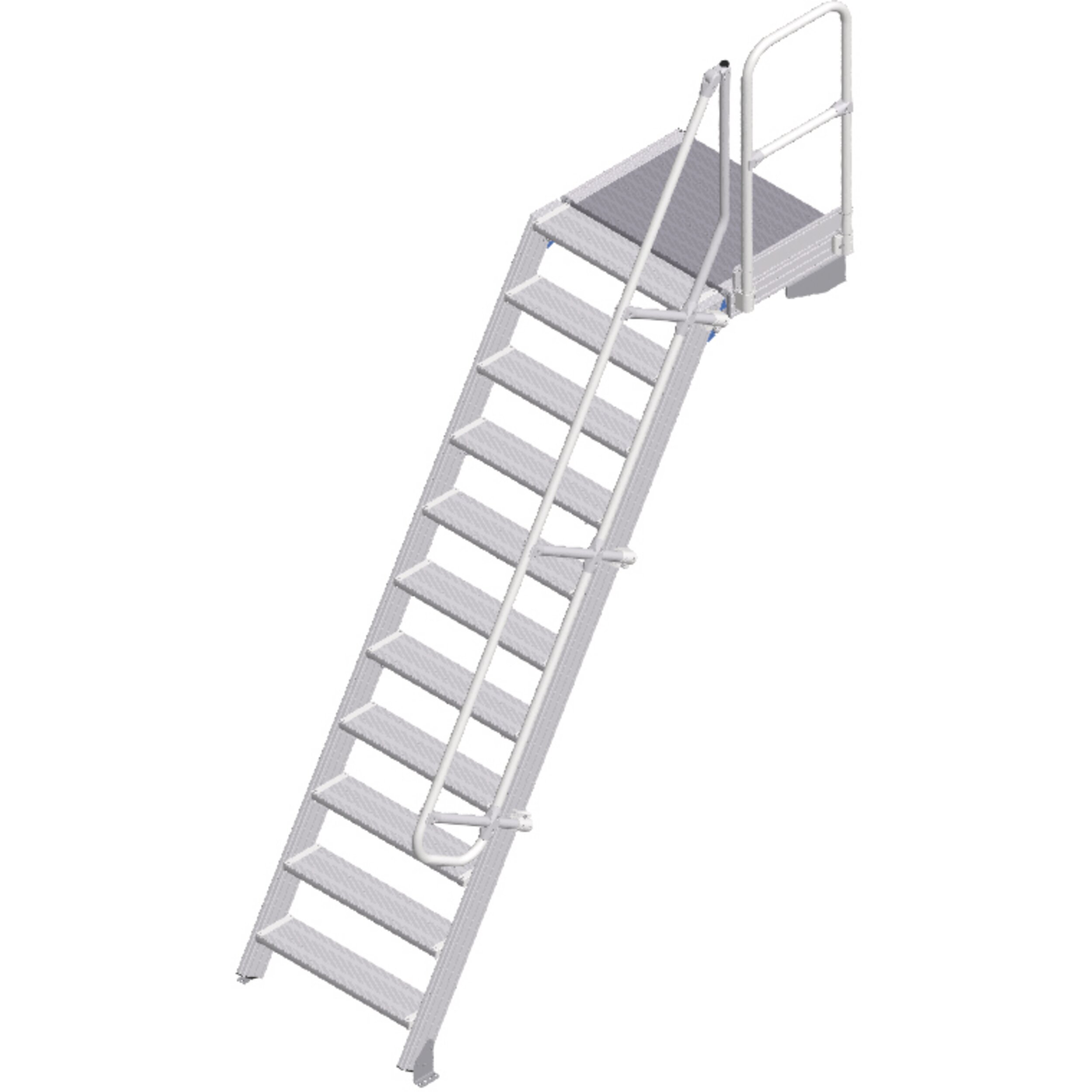 • A lépcsők és a dobogó bevonata alapfelszerelésben bordázott alumíniumból (R10). Választható acélrácsos (R12) és perforált acéllemezes (R13) kivitelben is a nagyobb csúszásbiztonság érdekében.