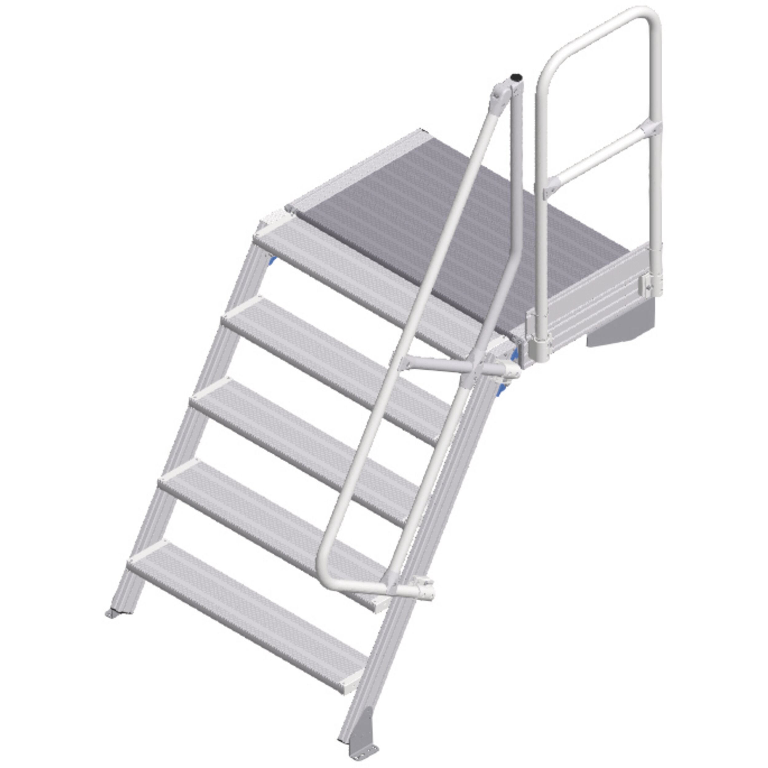 • A lépcsők és a dobogó bevonata alapfelszerelésben bordázott alumíniumból (R10). Választható acélrácsos (R12) és perforált acéllemezes (R13) kivitelben is a nagyobb csúszásbiztonság érdekében.