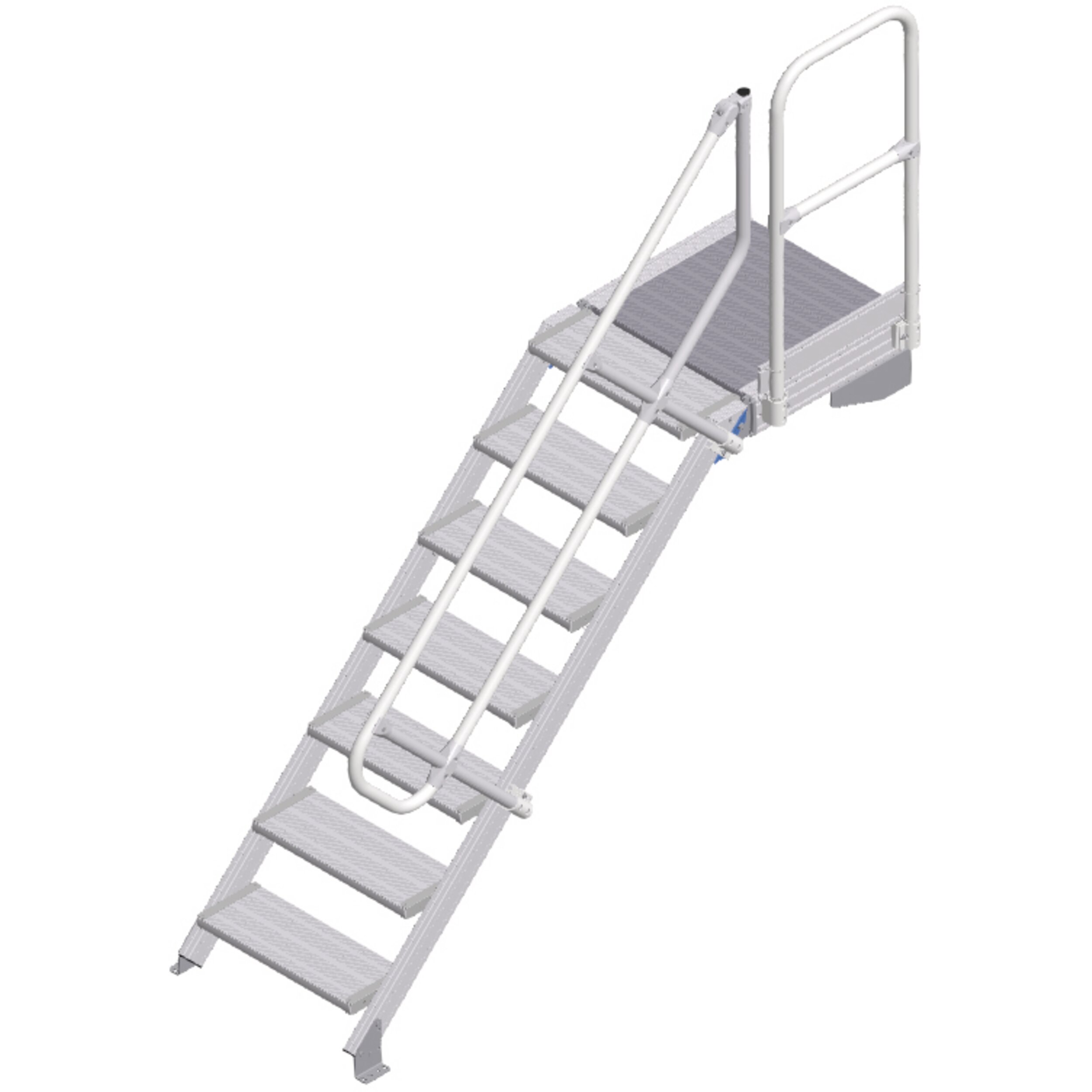 • A lépcsők és a dobogó bevonata alapfelszerelésben bordázott alumíniumból (R10). Választható acélrácsos (R12) és perforált acéllemezes (R13) kivitelben is a nagyobb csúszásbiztonság érdekében.