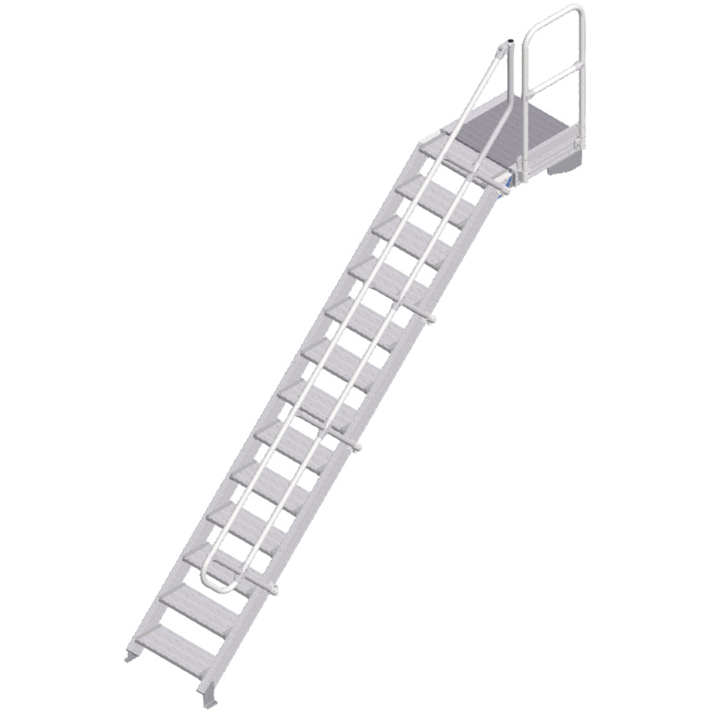 • A lépcsők és a dobogó bevonata alapfelszerelésben bordázott alumíniumból (R10). Választható acélrácsos (R12) és perforált acéllemezes (R13) kivitelben is a nagyobb csúszásbiztonság érdekében.