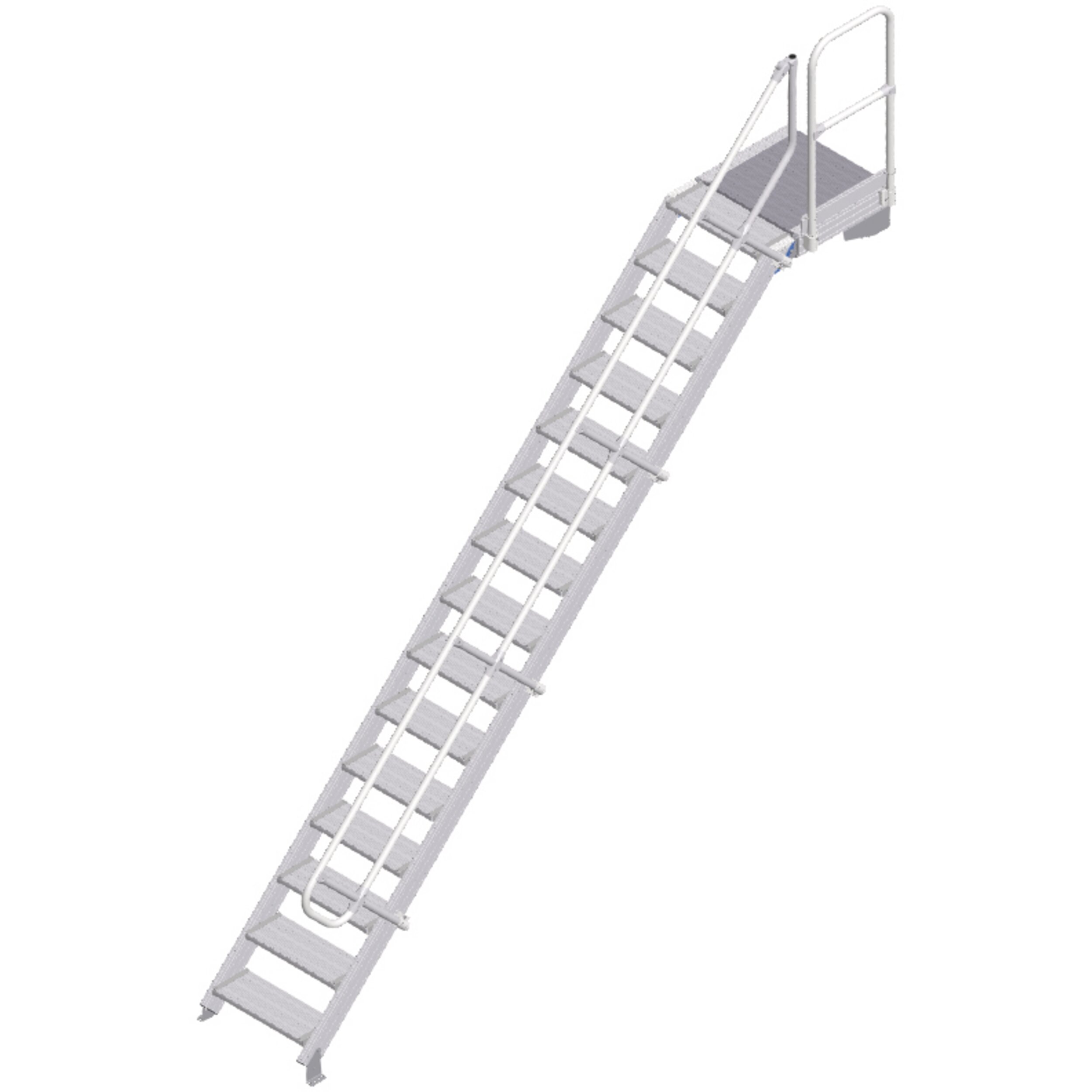 • A lépcsők és a dobogó bevonata alapfelszerelésben bordázott alumíniumból (R10). Választható acélrácsos (R12) és perforált acéllemezes (R13) kivitelben is a nagyobb csúszásbiztonság érdekében.