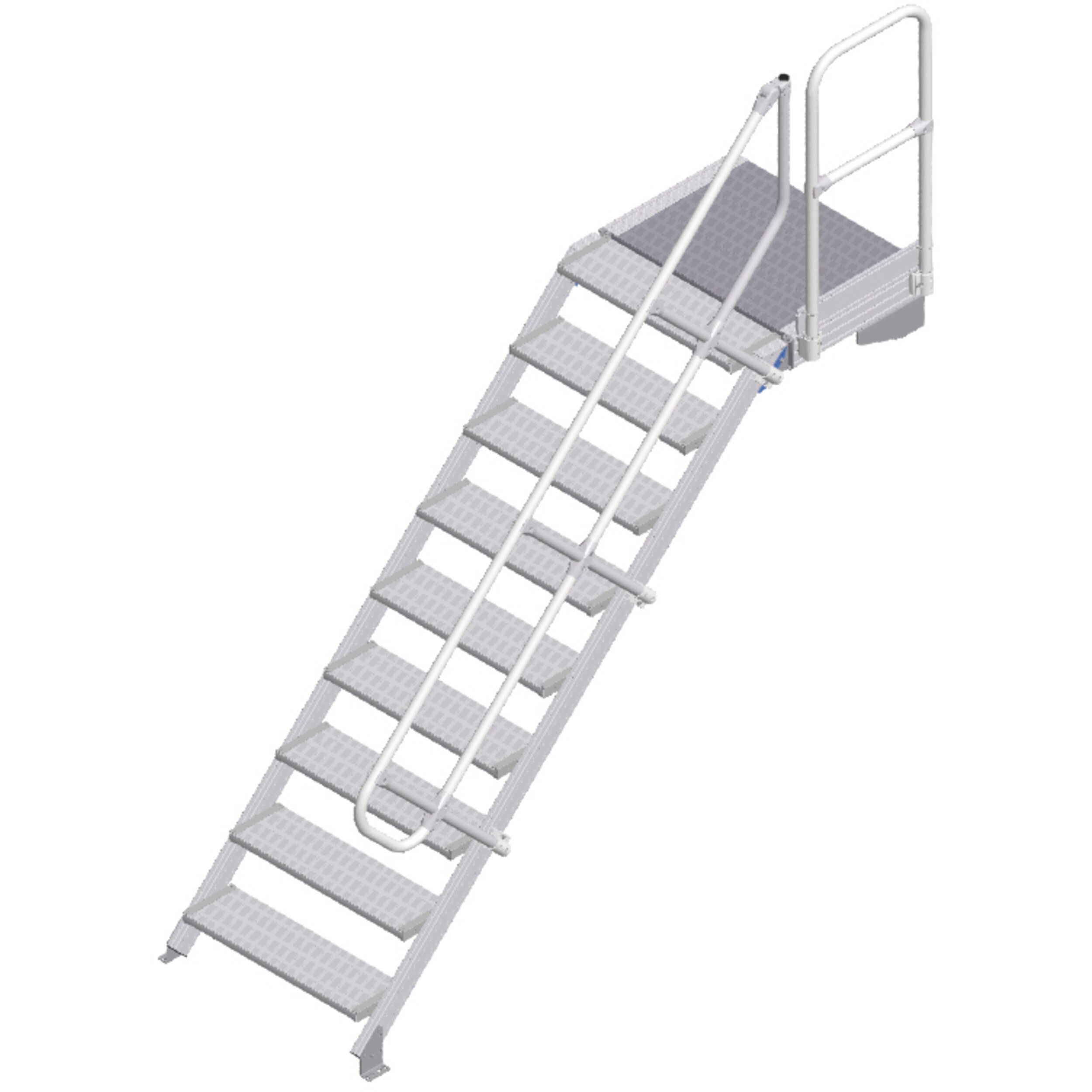 • A lépcsők és a dobogó bevonata alapfelszerelésben bordázott alumíniumból (R10). Választható acélrácsos (R12) és perforált acéllemezes (R13) kivitelben is a nagyobb csúszásbiztonság érdekében.