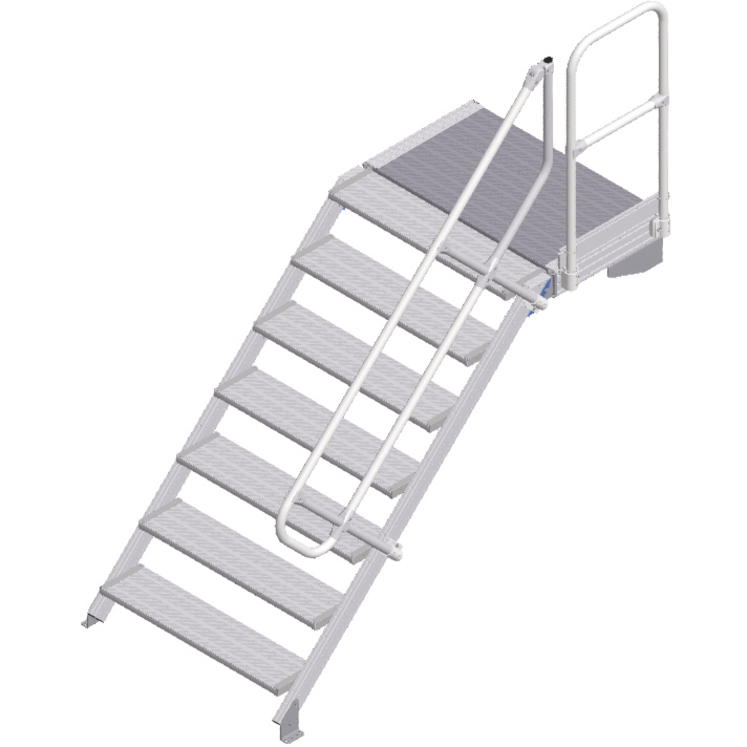 • A lépcsők és a dobogó bevonata alapfelszerelésben bordázott alumíniumból (R10). Választható acélrácsos (R12) és perforált acéllemezes (R13) kivitelben is a nagyobb csúszásbiztonság érdekében.