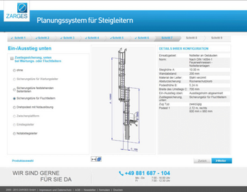 Az online konfigurátor ugyanazon a rendszeren alapul, mint a ZARGES lépcsőknél, áthidalóknál és Creaxess dobogós lépcsőknél.