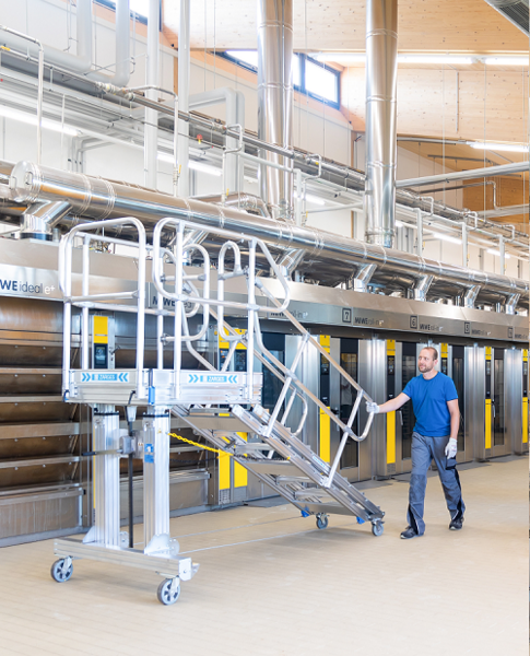Bovendien kunt u zelf zien en ervaren hoe de nieuwe in hoogte verstelbare platformtrap u in een handomdraai naar 4,9 meter werkhoogte brengt.