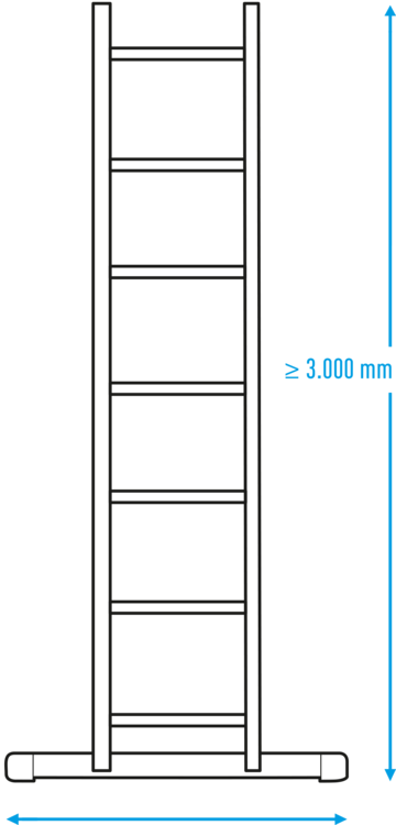• Bij alle ladders die als enkele ladder kunnen worden gebruikt, is volgens de nieuwe norm vanaf een lengte van 3.000 mm een basisverbreding nodig.